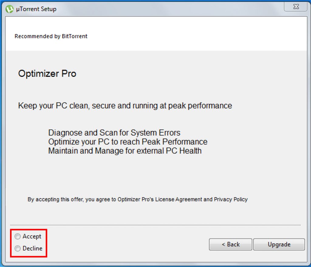 Another piece of advice: When installing an application, be sure to actually READ what you’re agreeing to. Just clicking “next, next, next” is doing a lot more hurt than good. Below are a few screenshots of the uTorrent installation. If I hadn’t unchecked, or declined all three of those ‘offers’, I would have just crippled my machine in a matter of seconds.